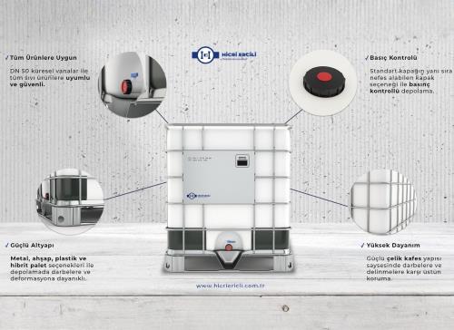 - Plastik paletli IBC tanklar: Hafifliği ve kolay taşınabilirliği sayesinde lojistik operasyonlarda yüksek verimlilik sağlar.