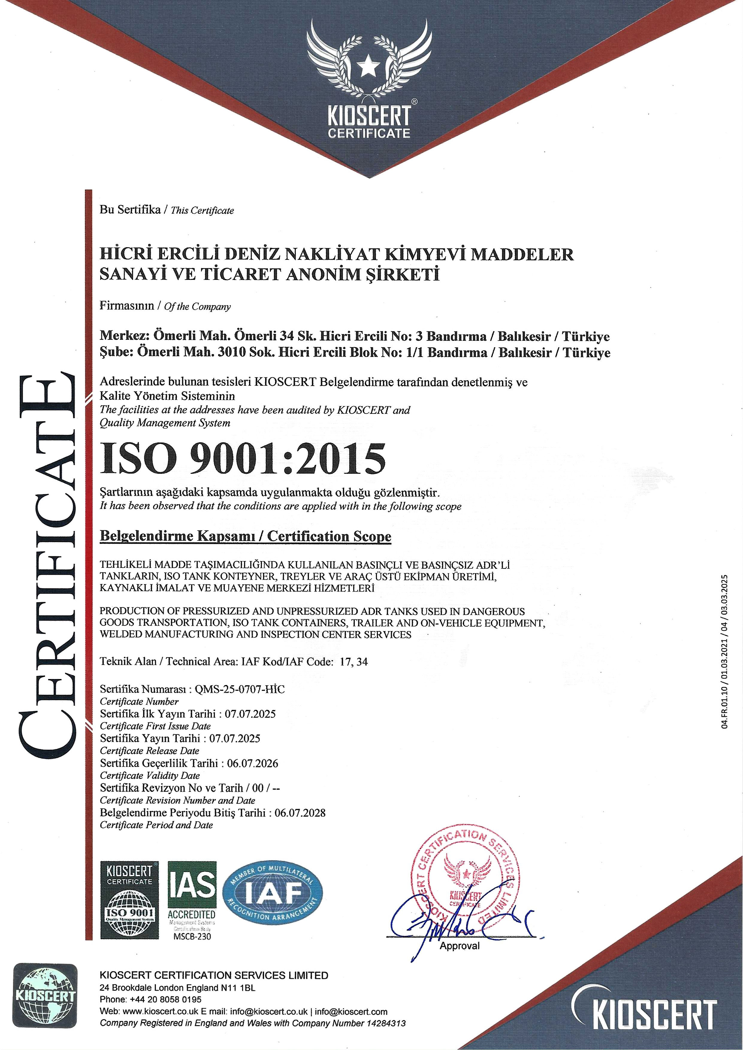 ADR’li Araç Muayene Merkezi